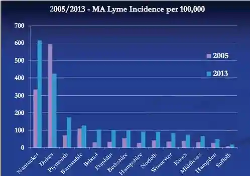 2005-13 Lyme Disease Increase by MA County |